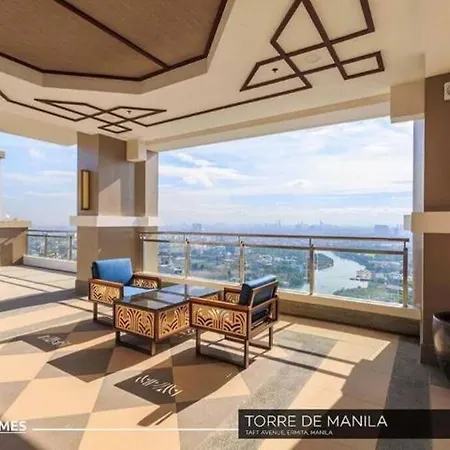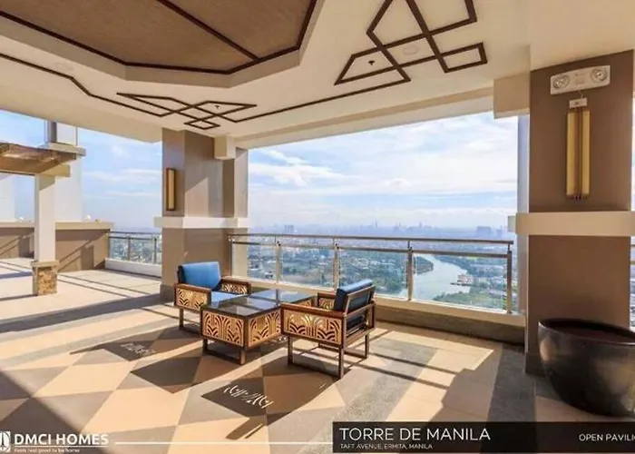 ベッドルーム1室のTorre Demanila Taftavenue Kingbed1Bedroombalcony 65Inchestv Rooftop Viewing Lunetapark Manilaocean Manilabay Us Embassy マニラ市アパートはマニラ市の中心に位置し、ラジャ・スレイマン・パークから歩いて18分です。 テラス付きのこの31m²のアパートはマニラ湾数歩の距離に位置しています。